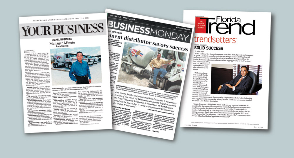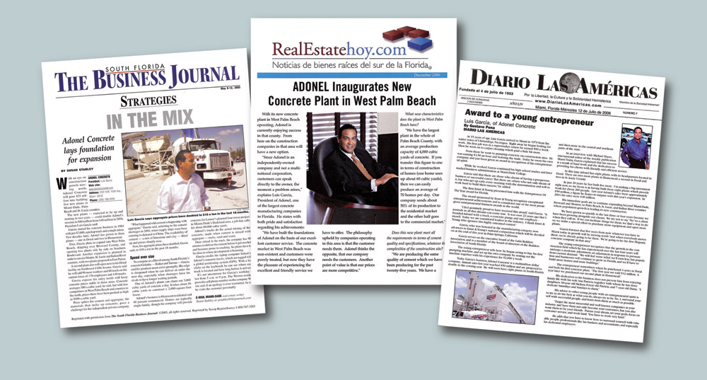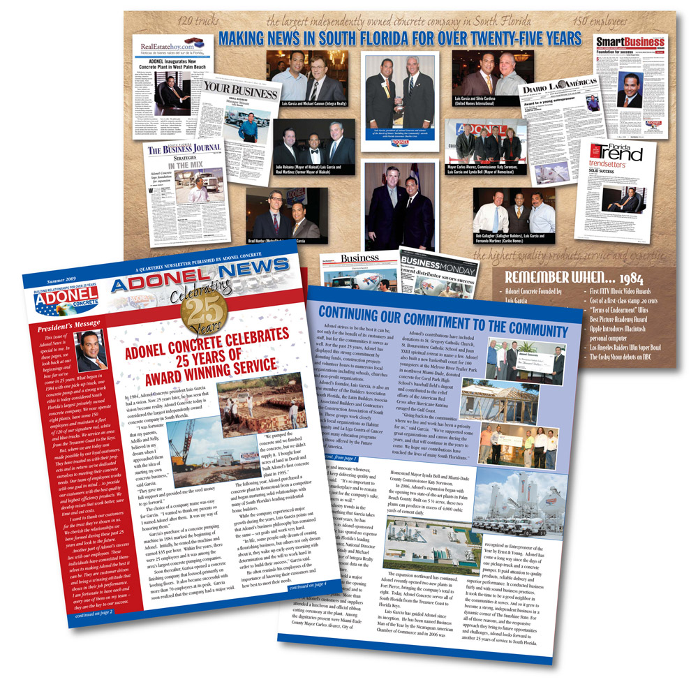 Adonel Concrete retained Kiskinis Communications in 2004. At the time, Adonel was a young player by industry standards. It had just spent its first 10 years celebrating the success of its original concrete plant in Sweetwater and the opening of a second in Homestead. In order to better position itself for future contracts and expansion, Adonel Concrete needed to tell its story. It needed to convince potential customers that it could supply any project in the South Florida market.