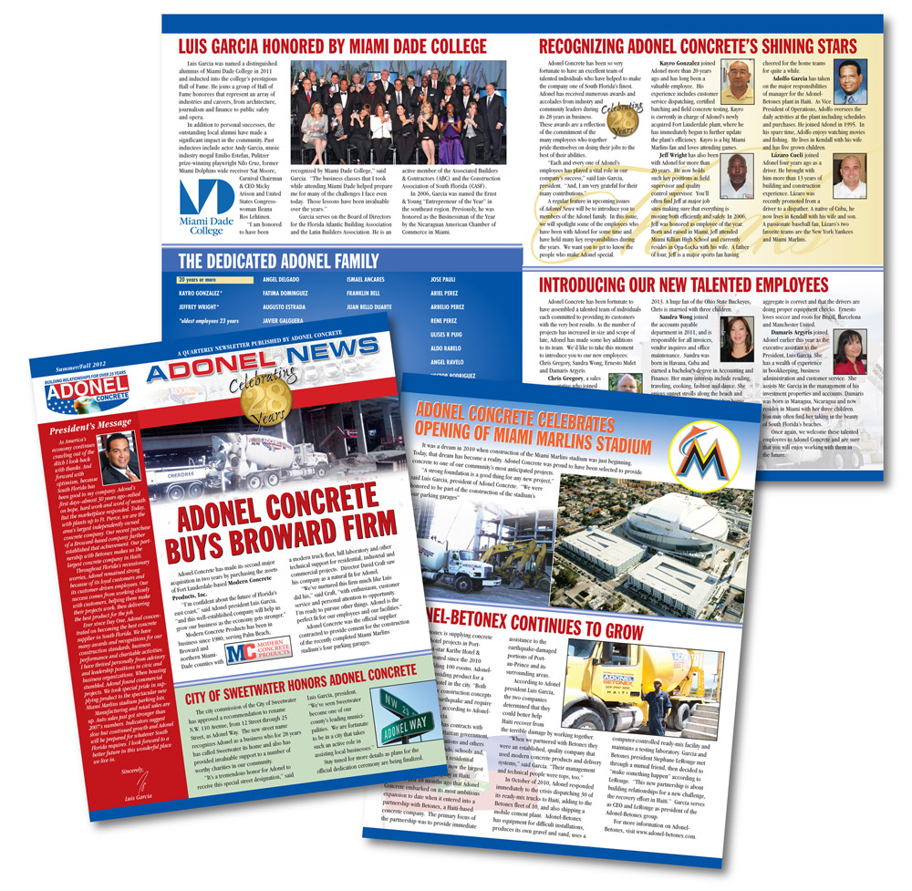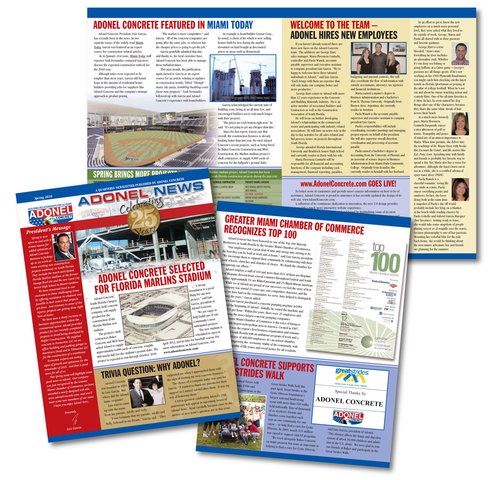 To support the media relations program, the agency implemented a direct mail campaign targeting Adonel's current and prospective customers focusing on the services offered. We also designed Adonel News, a company newsletter that introduced customers to team members and announced high-profile projects.